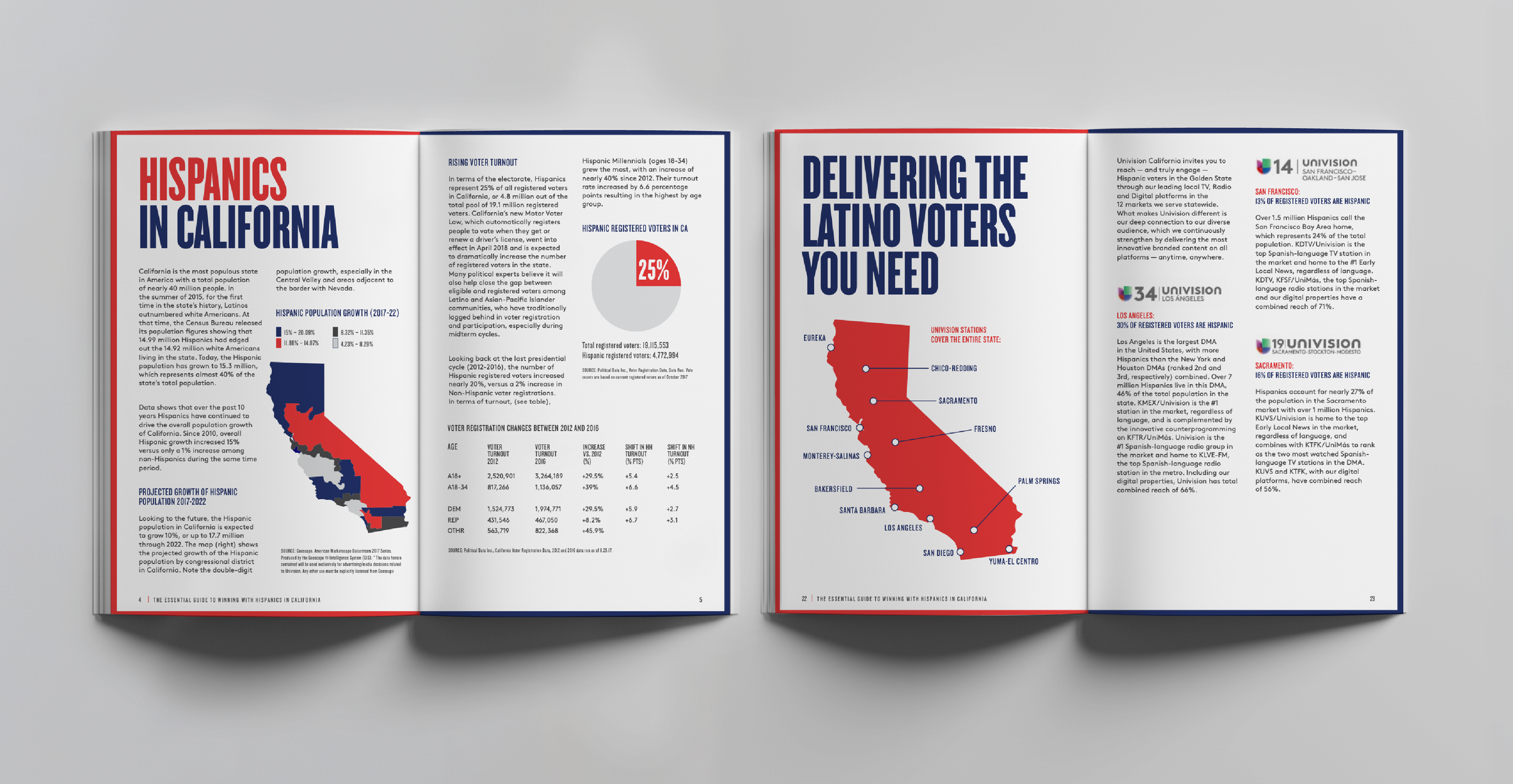 The Hispanic Voter Guide was designed in collaboration with the Political Advocacy Team at Univision. What began as a single national level publication created for voters during an election year evolved into an expanded series. The project grew to include state-specific editions, with dedicated booklets tailored to voters in states such as California and New York.