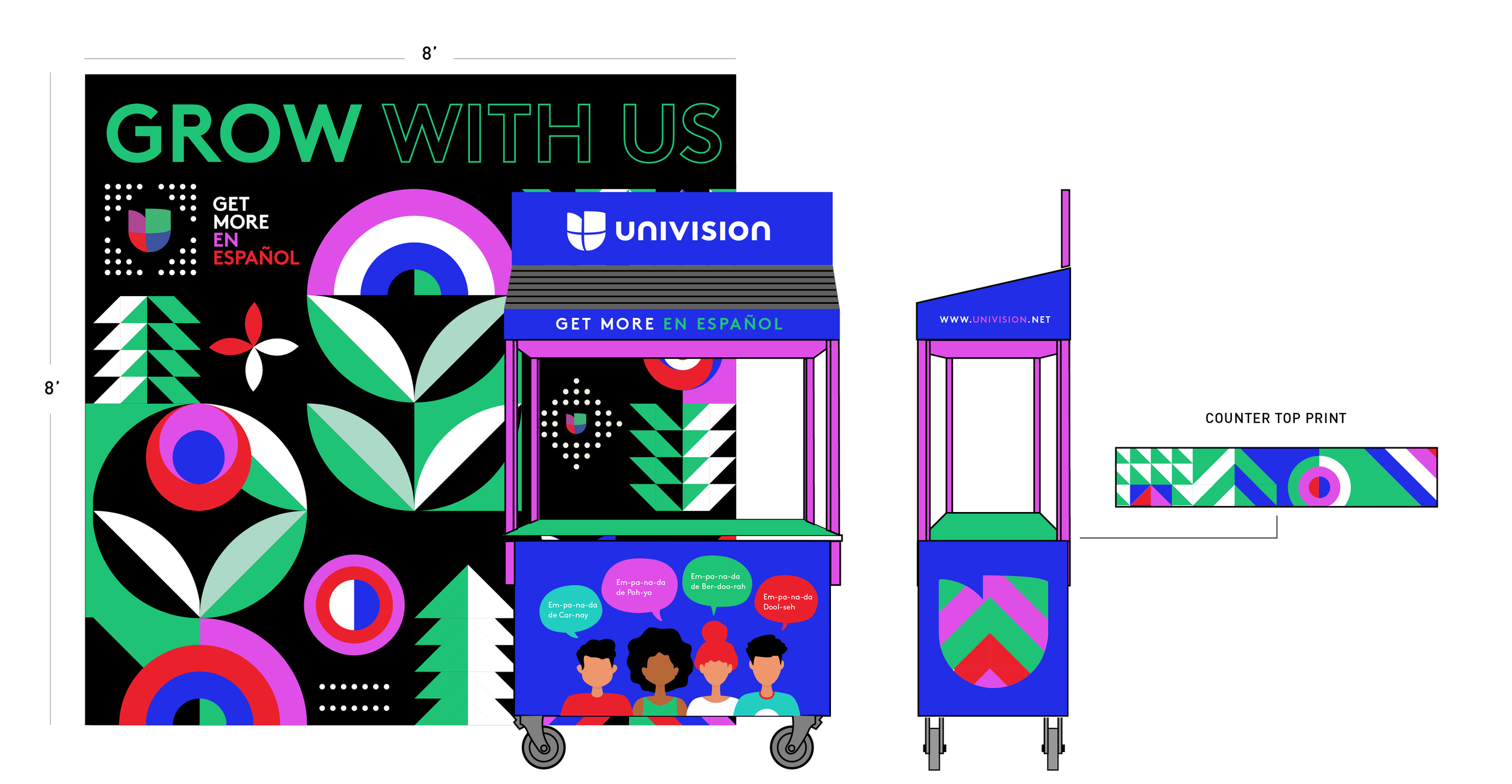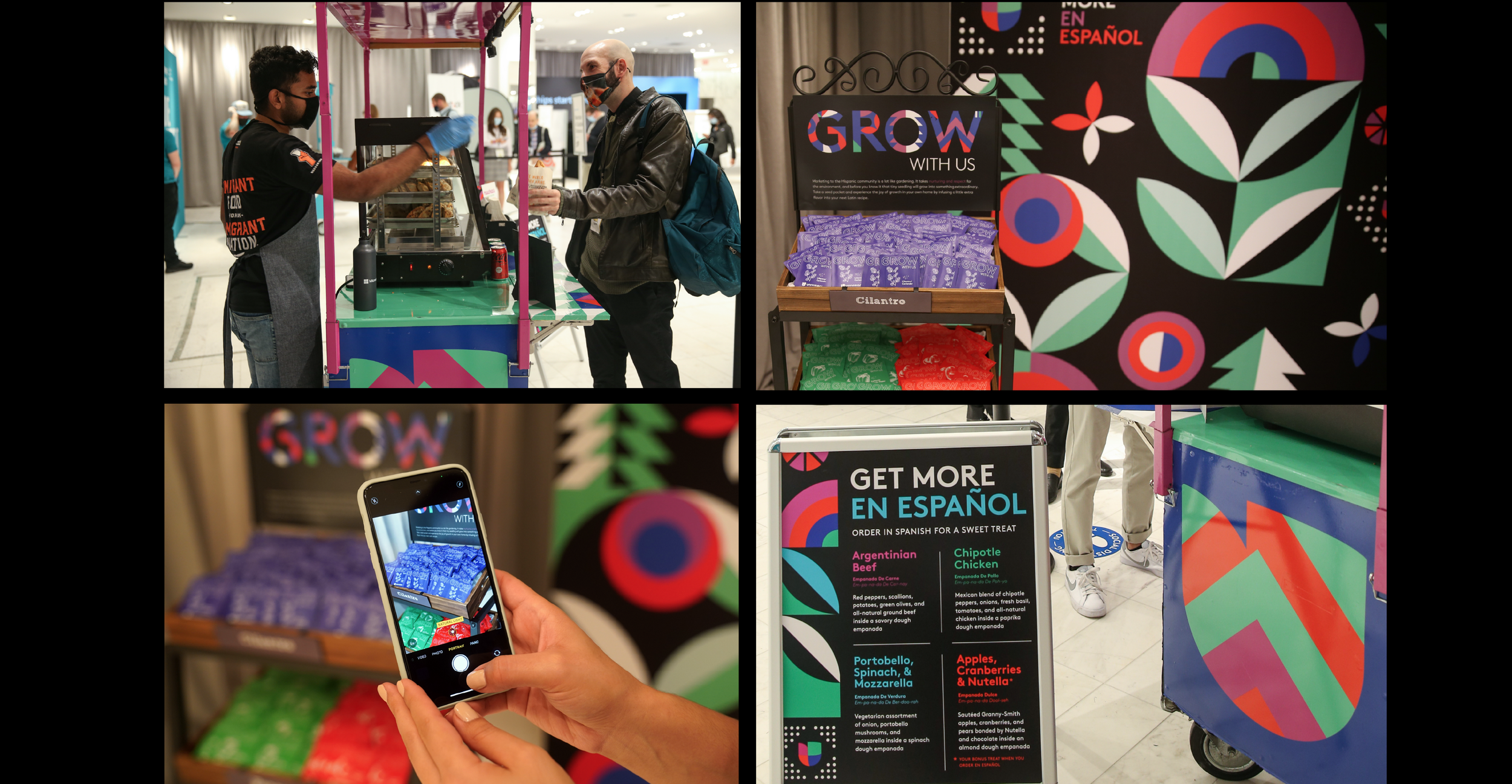 For Univision at Adweek, I created a “Grow With Us” experiential activation featuring a branded food cart serving empanadas. With vibrant signage, custom seed packets, and dynamic visuals, the activation brought the theme of growth through cultural engagement to life, encouraging audiences to explore Univision’s Spanish-language content and creating a memorable, interactive brand experience.
