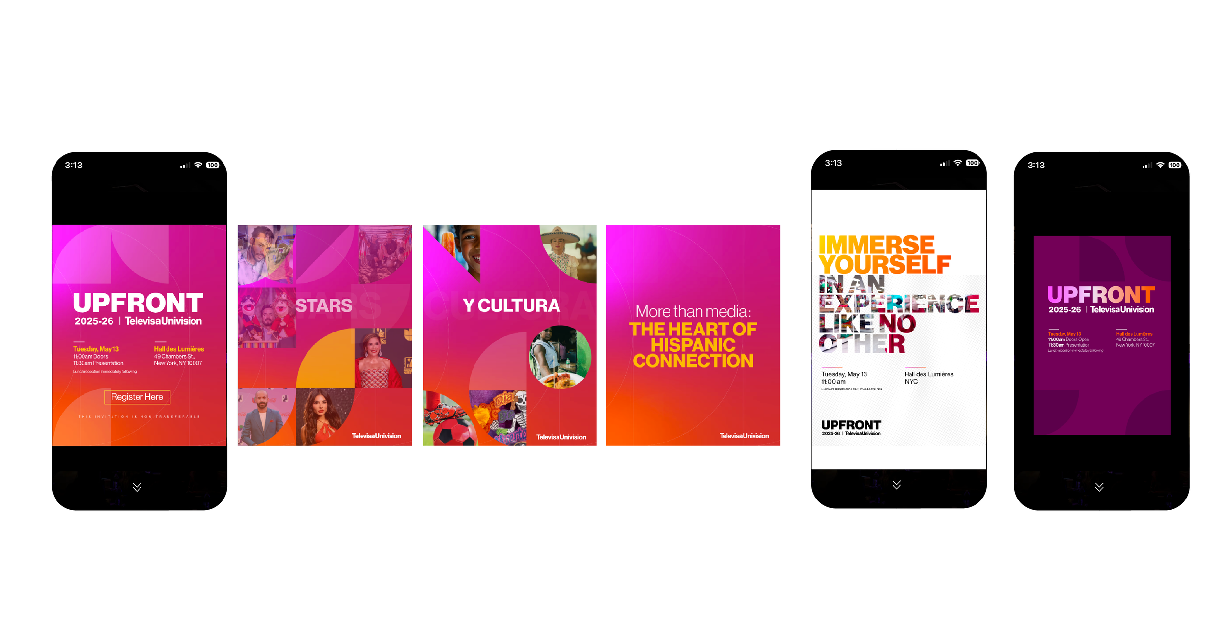 Over the past several years, I’ve contributed to TelevisaUnivision’s annual upfront as both a designer and art director. Collaborating with in-house and external creative teams across marketing, corporate branding, and experiential, I helped build cohesive visual systems that unified every touchpoint. My work spanned communication graphics, OOH trade campaigns, social content, keynote presentations, and immersive on-site environments—each designed to bring the brand’s story to life for a large yet highly targeted audience.