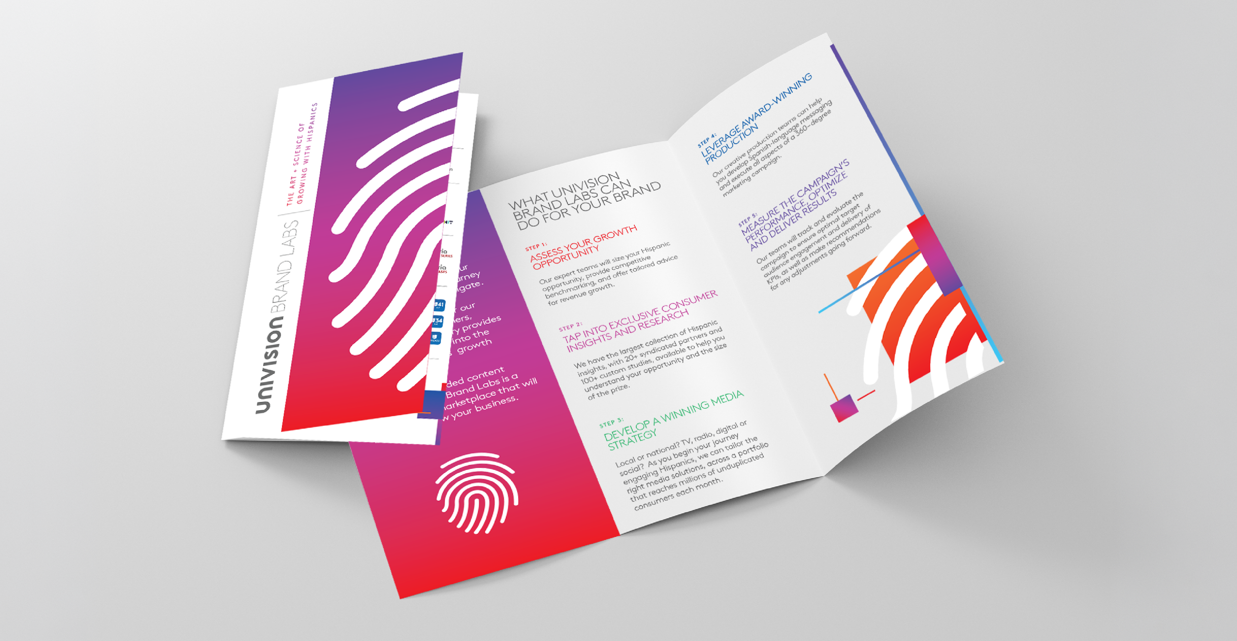 Brand Labs was introduced by Univision Communications as a strategic marketing initiative designed to help media partners build stronger connections with U.S. Hispanic audiences through key insights. As a member of the in-house design team, I developed the brand mark, ensuring it aligned with the parent company’s corporate identity and reflected the direction established through multiple briefing sessions with senior leadership.