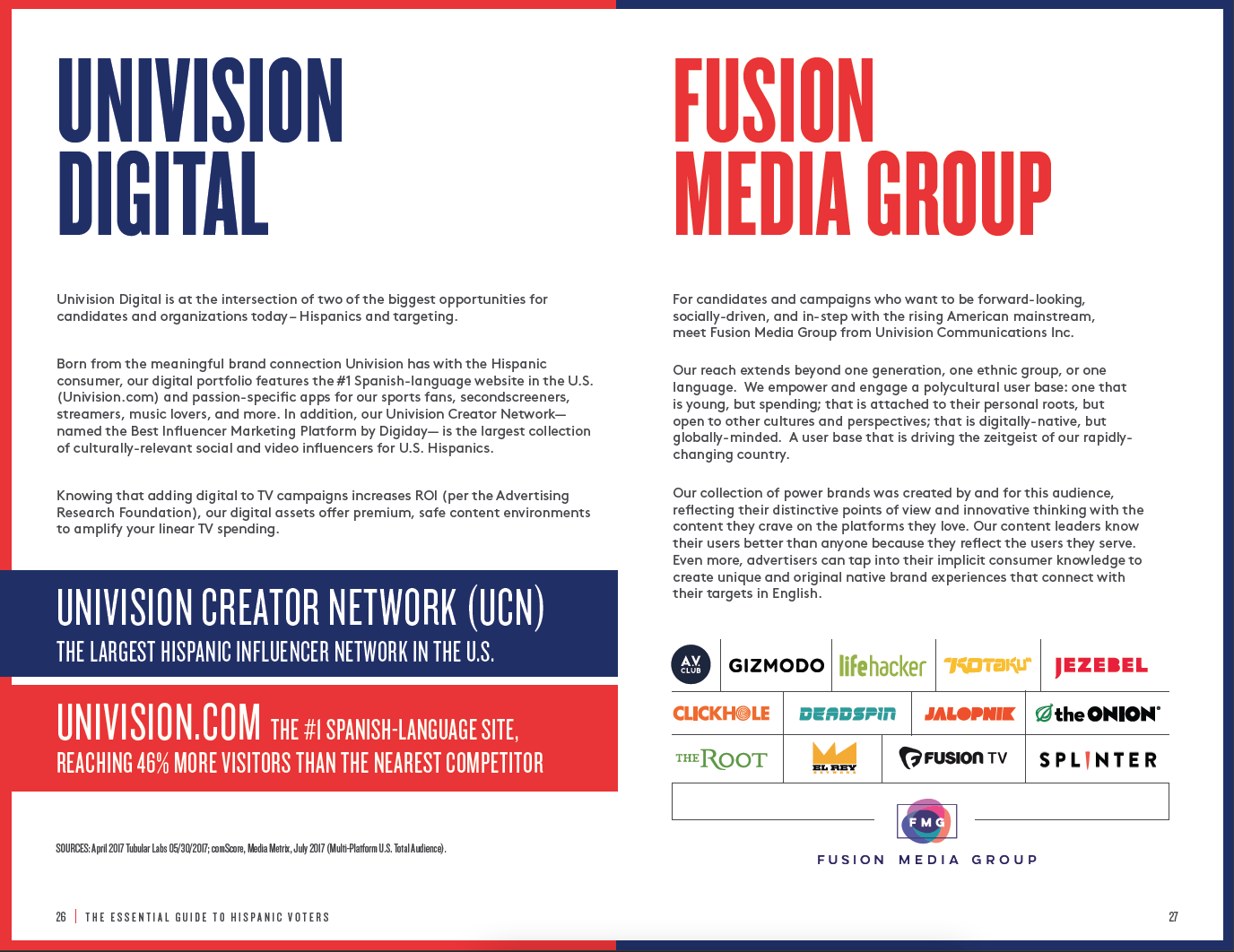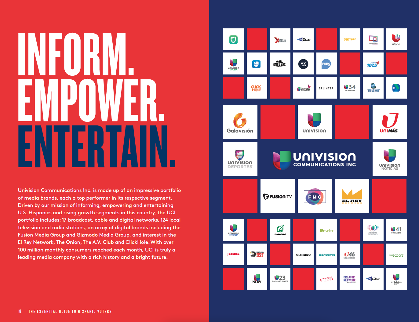Univision Communications: A booklet designed in partnership with Univision’s Political Advocacy Team in order to serve as a primer to U.S. Hispanic voters.