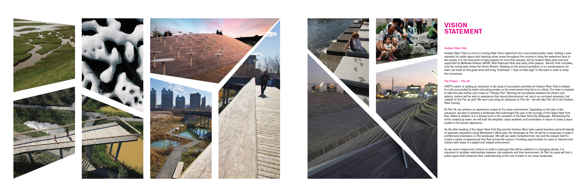 The Collective: An RFP to the city of New York for the development of Pier 26, designed in a few different format for Landscape architectural firm, Grain Collective.