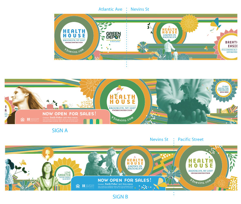 Halstead Property: Poster, and a 90 foot vinyl sign designed to be wrapped around a prime property on Nevins Street in Brooklyn for sale.
